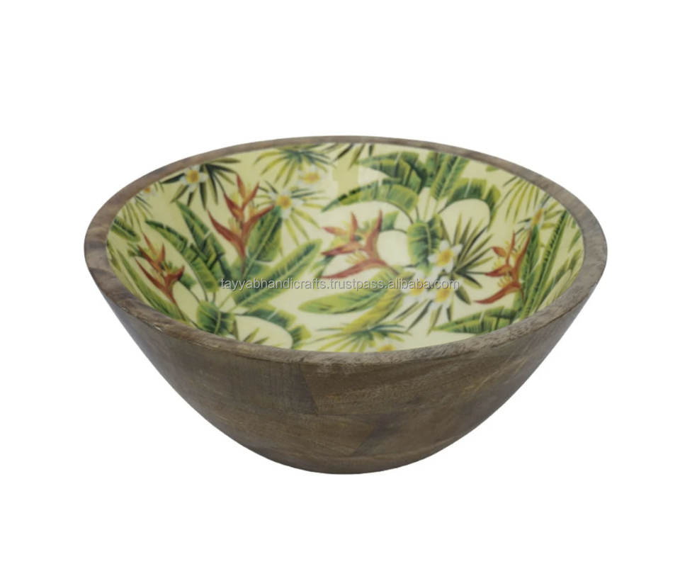 Eco-Friendly Handcrafted Wood Resin Printed Fruit Bowl Tray Minimal Soup Serving Decorative Salad Bowl Tayyab Handicraft for
