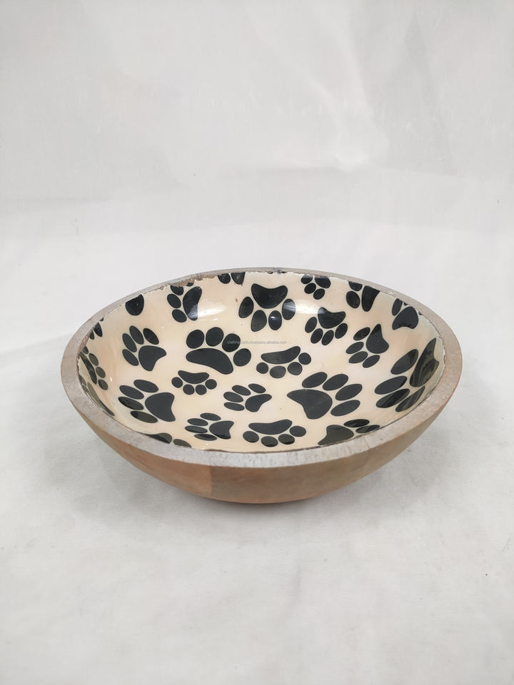 Eco-Friendly Premium Mango Wood Enameled Printed Bowls Decorative Dough Dinner Bowls from India for sale in bulk