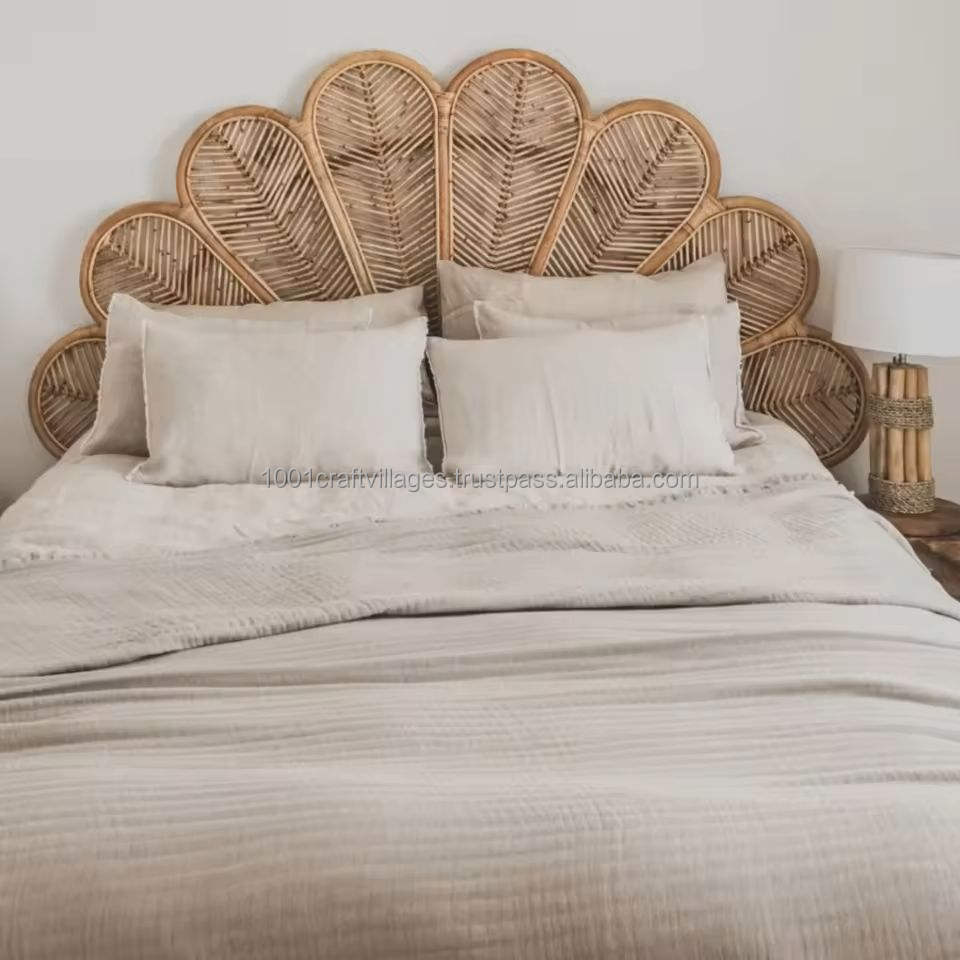 Eco Friendly Handmade Natural Rattan Headboard Wholesale Supplier Customizable Durable Bed Design Vietnam