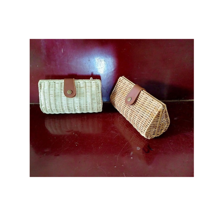 Eco Friendly Handmade Rattan Bag Round Straw Crossbody Purse for Casual Summer Outfits Beach and Travel Use