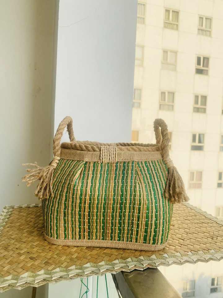 Eco Friendly Handmade Seagrass Woven Basket Natural Storage Organizer for Plants Books and Living Room Decor