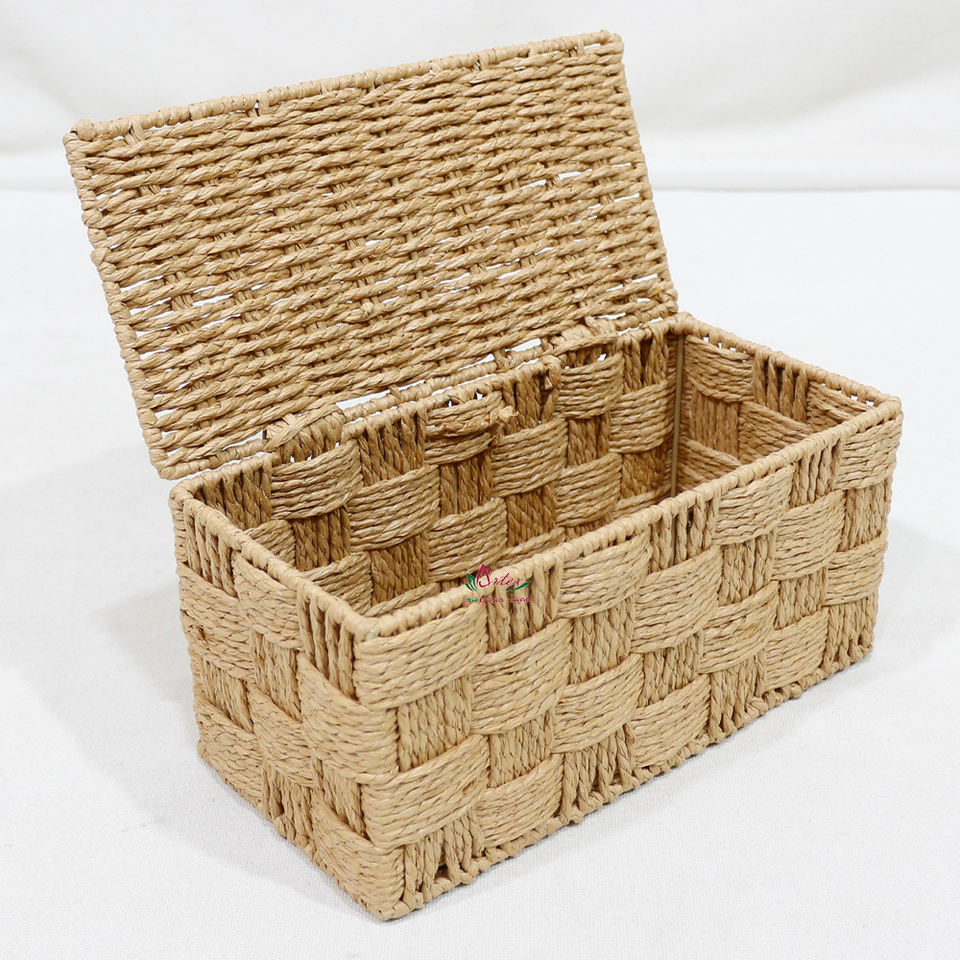 Eco Friendly Handmade Seagrass Woven Storage Basket with Lid, Multi Purpose Organizer for Gifts & Home Decor