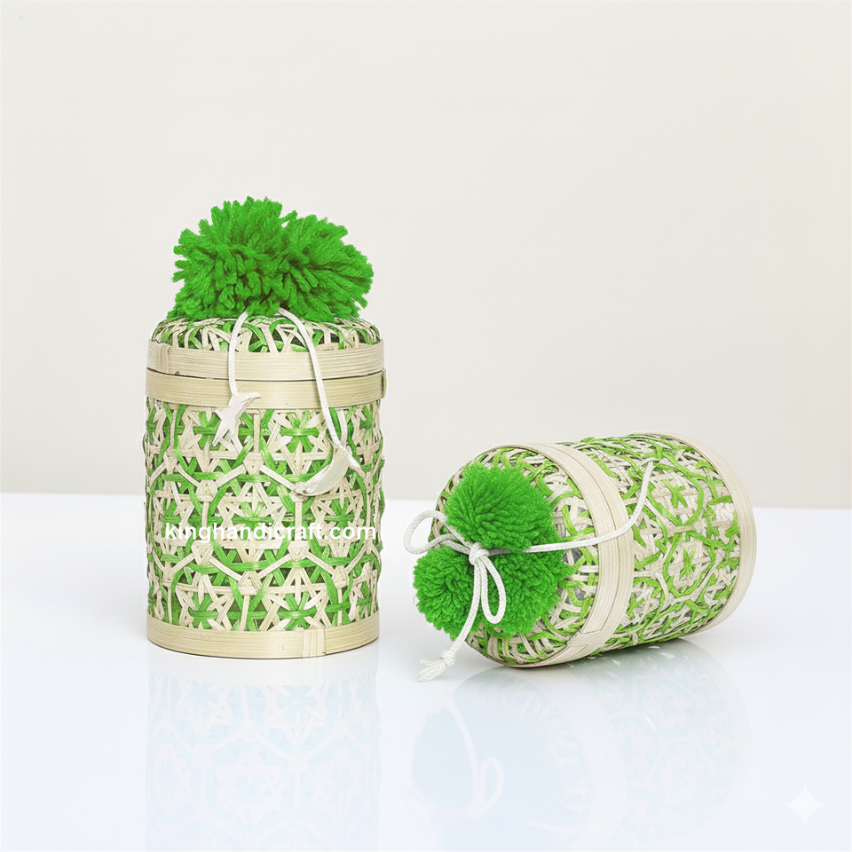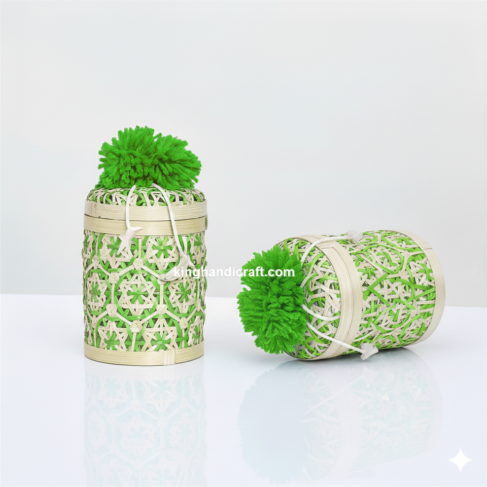 Eco-Friendly Handwoven Bamboo Modern Flexible Design Round Gift Box with Lid for Ramadan Eid | Perfect Storage Basket