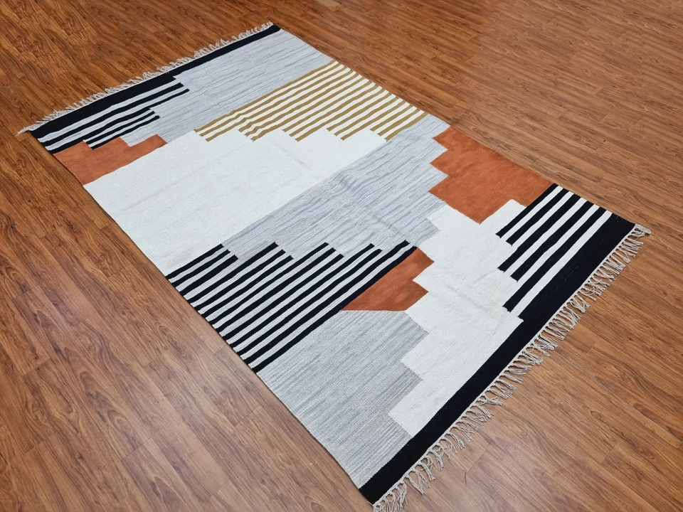 Eco-Friendly Handwoven Cotton Rug Moroccan Style Tufted Navajo Aztec Design Cushioned for Comfort for Living Room Washable
