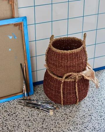 Eco Friendly Handwoven Seagrass Storage Basket Handmade Wicker Tall Shape Ideal For Laundry Storage And Wholesale Distribution