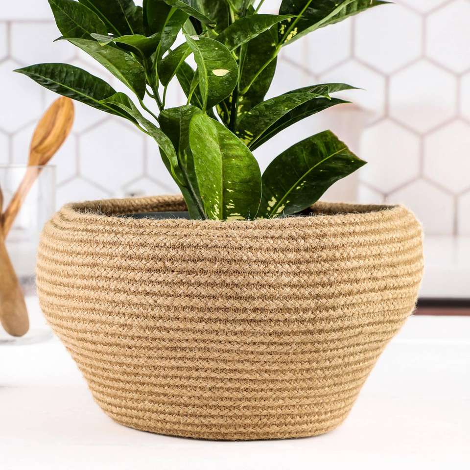 Eco-Friendly Handwoven Straw Basket for Potted Plants Natural Planter Storage Basket