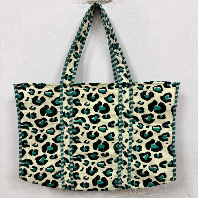 Eco Friendly High Quality Quilted Cotton Tote Bag Cream Green Solid Color Customized Color Flat Base Reusable Shoulder Shopping