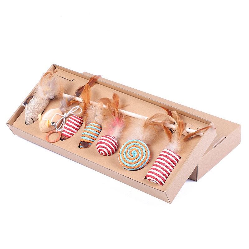 Eco-Friendly Interactive Wooden Handle Fishing Rod Toy for Cats with Detachable Feathered Fish Attachment
