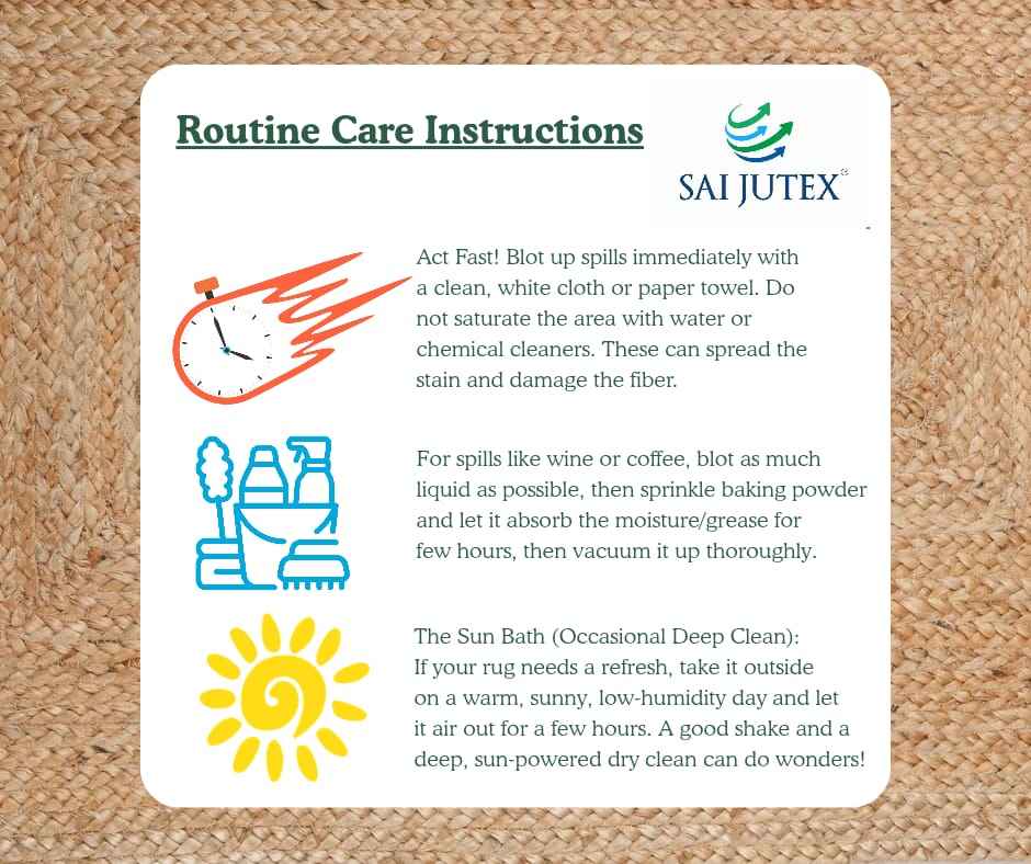 Do not wash, do not bleach, Dry Clean, Spot Clean, dry in shade, vacuum clean