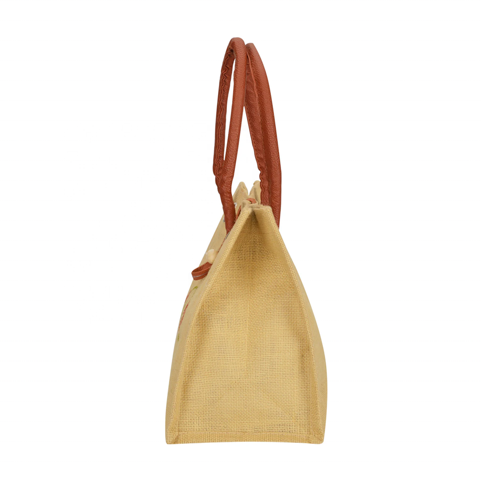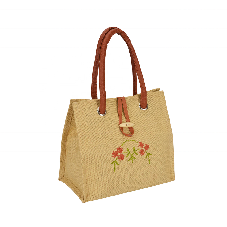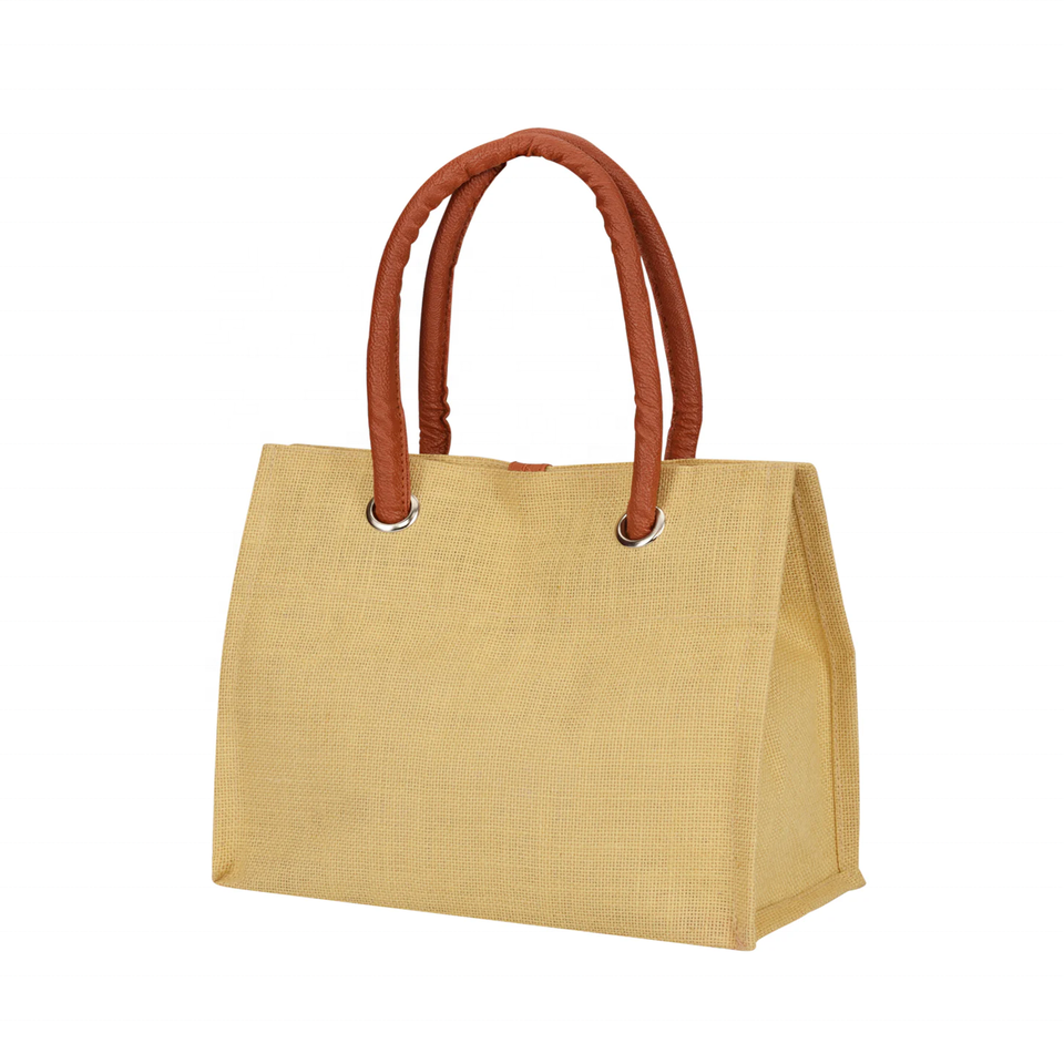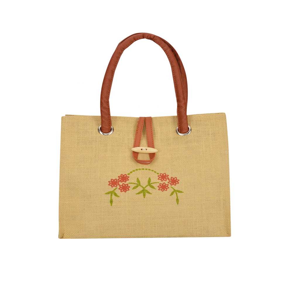 Eco-Friendly Jute Shopping Tote Bag 100% Natural with Silk Screen Printing and Padded Leather Handle