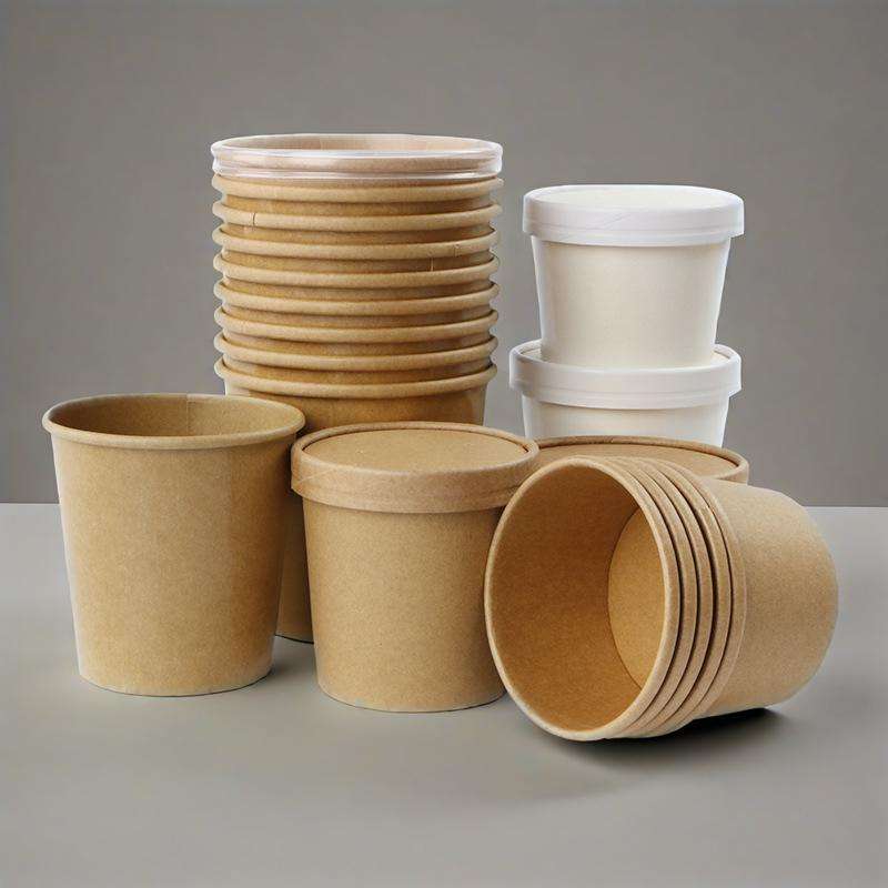 Eco Friendly Kraft Paper Pla Disposable Compostable 12oz White Natural Color 100% Compostable Pla Lined Salad Porridge Bowl