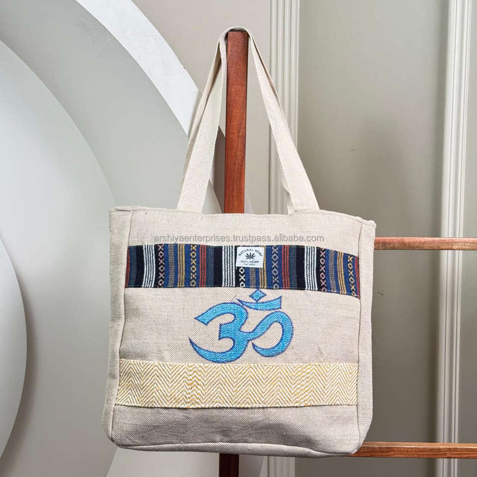 Type:Embroidered OM Symbol Hemp Tote Bag