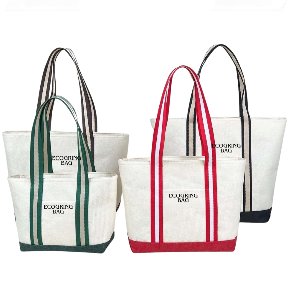 Eco-Friendly Large Capacity Plain Cotton Canvas Shopping Tote Bag Patchwork Design with Printing Pattern Made in Viet Nam