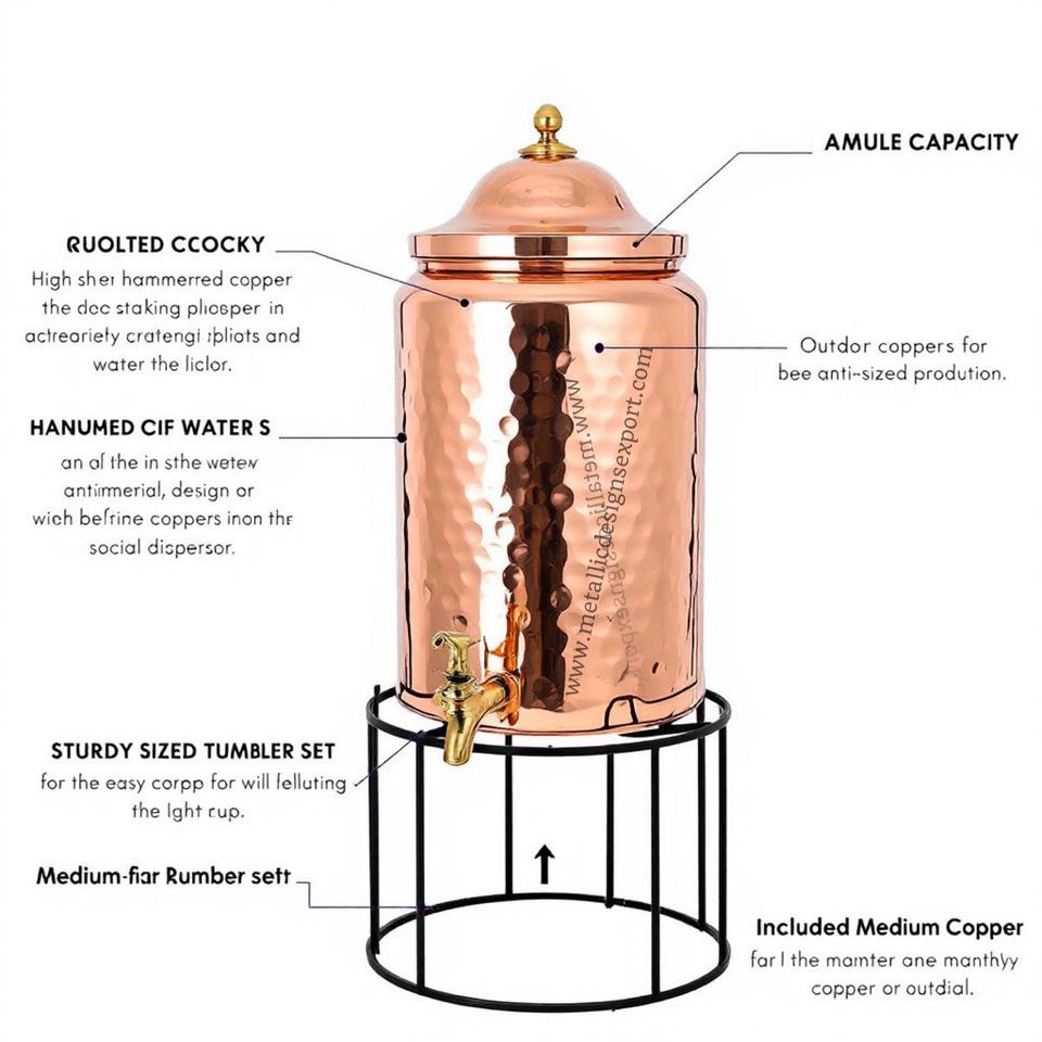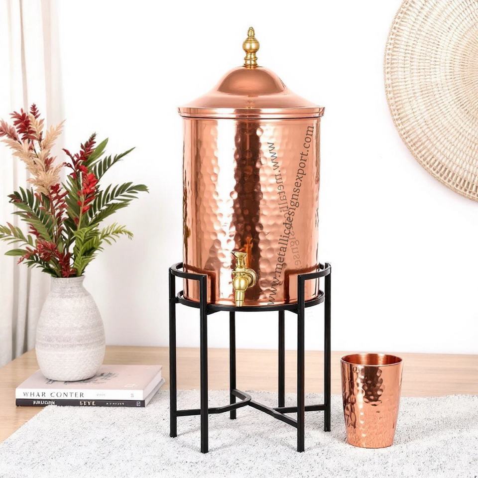 Eco-Friendly Large Hammered Copper Beverage Dispenser with Elegant Metal Stand Drink Server for Parties and Home Decor