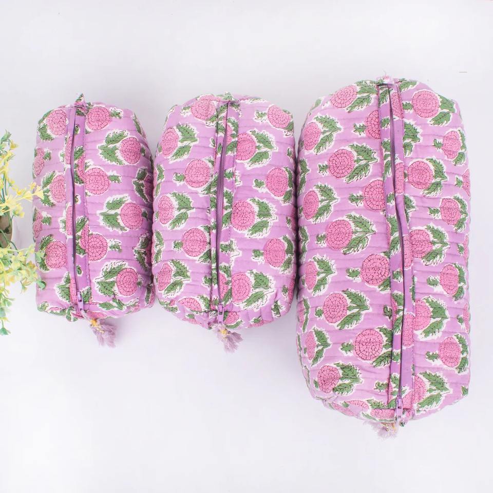 Eco-Friendly Large Quilted Wash Bag Indian Handmade Floral Print Cosmetic Organizer Zipper Vintage Style Travel Bag Vanity Case