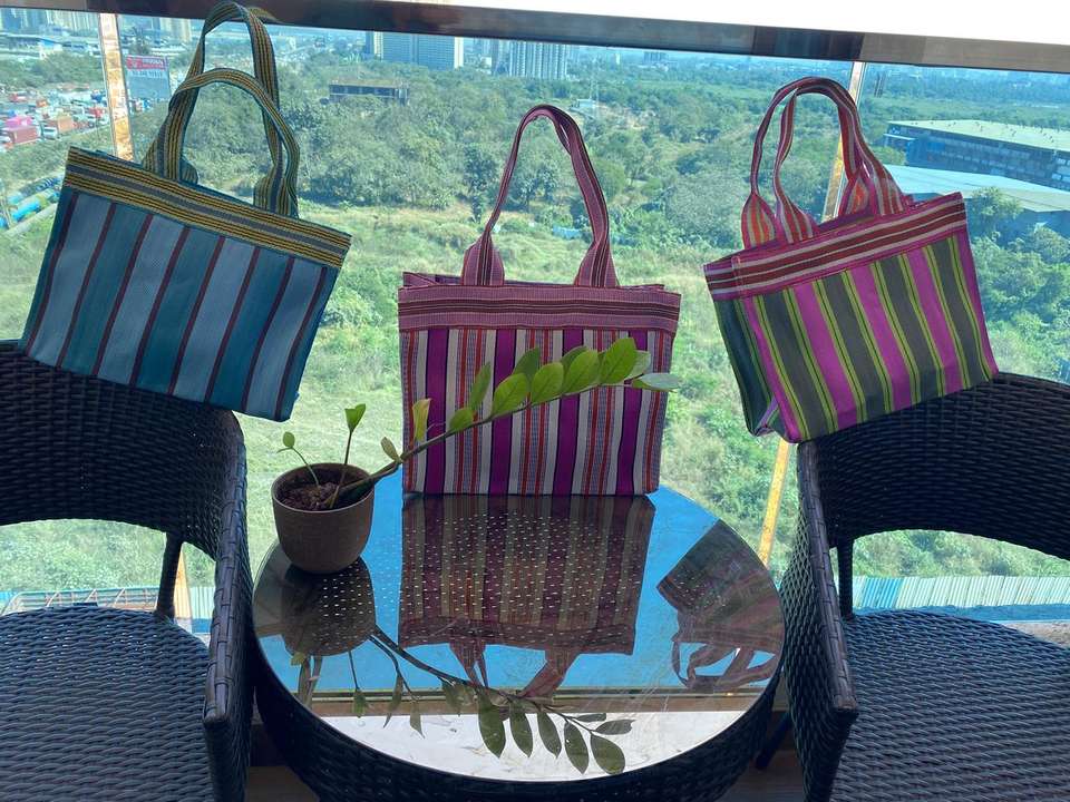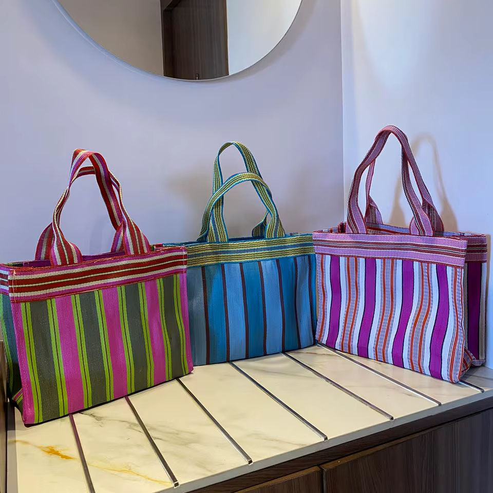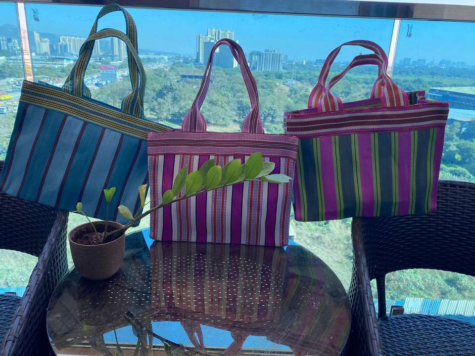 Eco-Friendly Large Woven Striped PP Nylon Shopping Bags Sustainable Recycled Polypropylene Plastic Made in India-Bulk Options