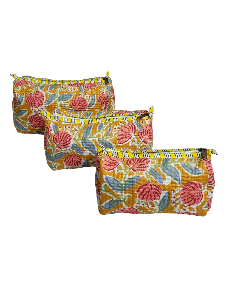 Eco-Friendly Lightweight Cotton Quilted for Bag Zipper Closure | Reusable Water Resistant Travel Daily Use Cosmetic Pouch