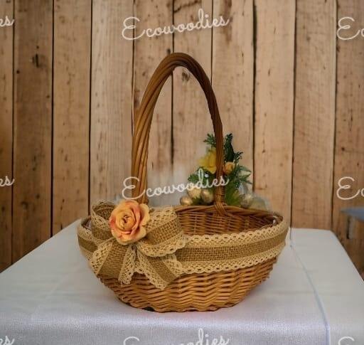 Eco-Friendly Lovely Woven Rattan Flower Basket With Handles Decorative Fruit Flower Storage Gift Baskets Storage Baskets