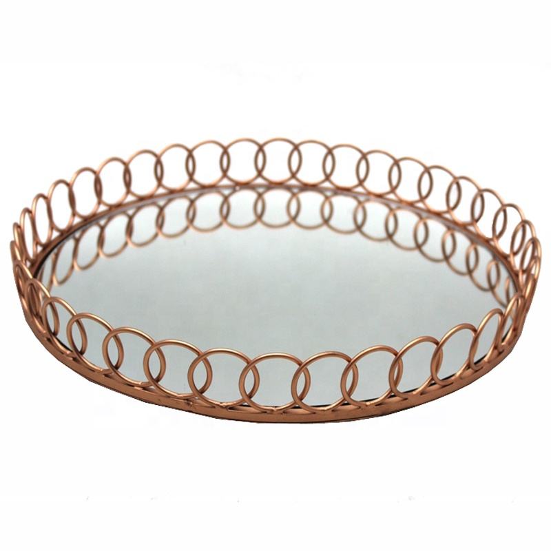 Eco-Friendly Luxury Design Copper Plating Glass Mirror Serving Tray Handmade Customized Decorative Kitchenware Dish Plate