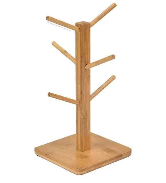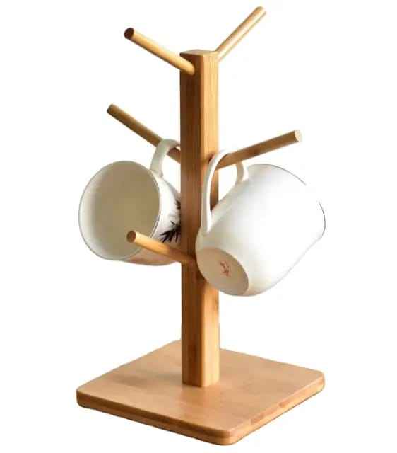 Eco-Friendly Luxury Home Kitchen Wooden Mug Holder Tree Stand with 6 Hooks Coffee Cup Organizer Rack