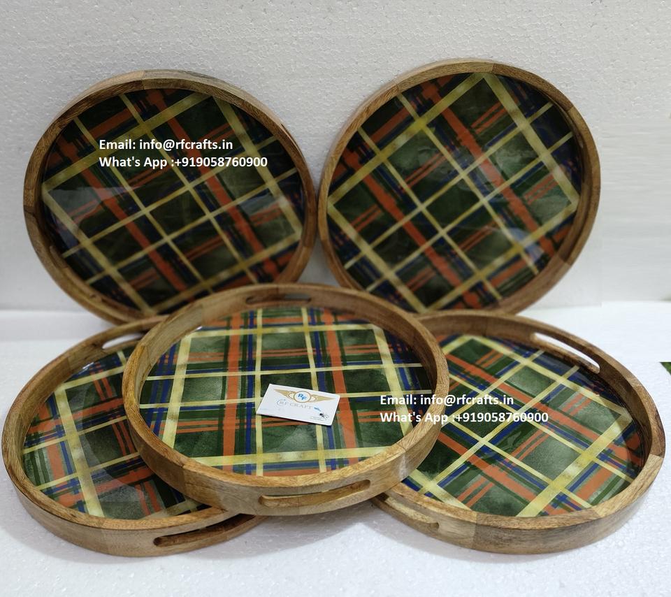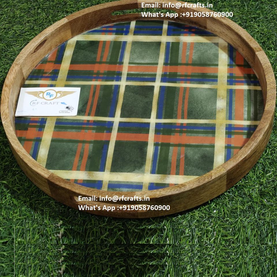 Eco-Friendly Luxury MDF Serving Trays Floral Patterns Custom Printed Acrylic Wood Enamel Coating for Home Hotel Use Elegant