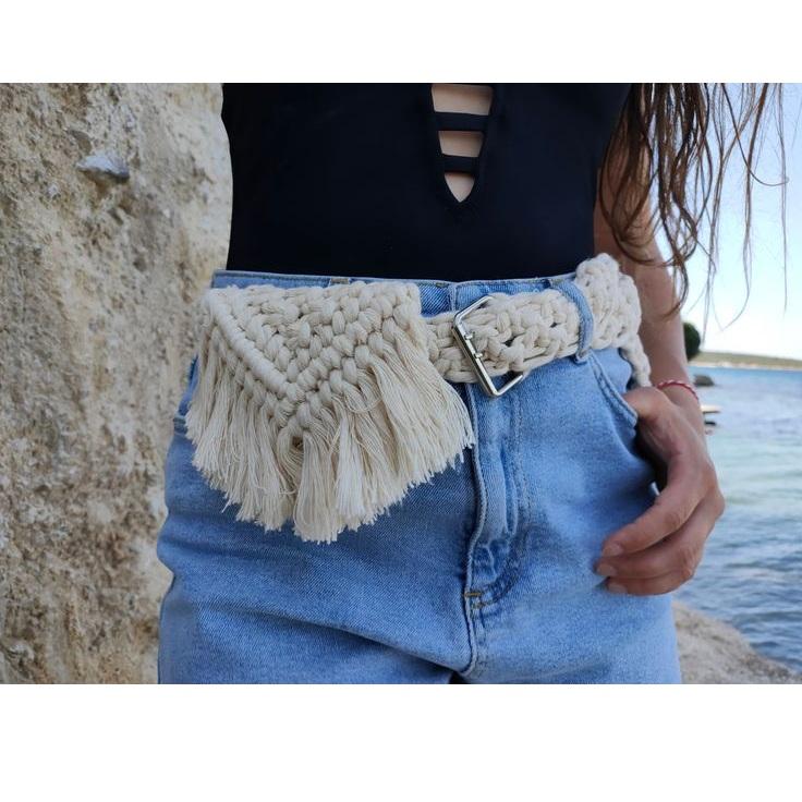 Eco Friendly Macrame Small Belt Bag Macrame Purse Boho Fanny Pack Bag Hand Woven Cotton Waist Bag for Girls