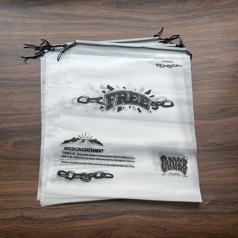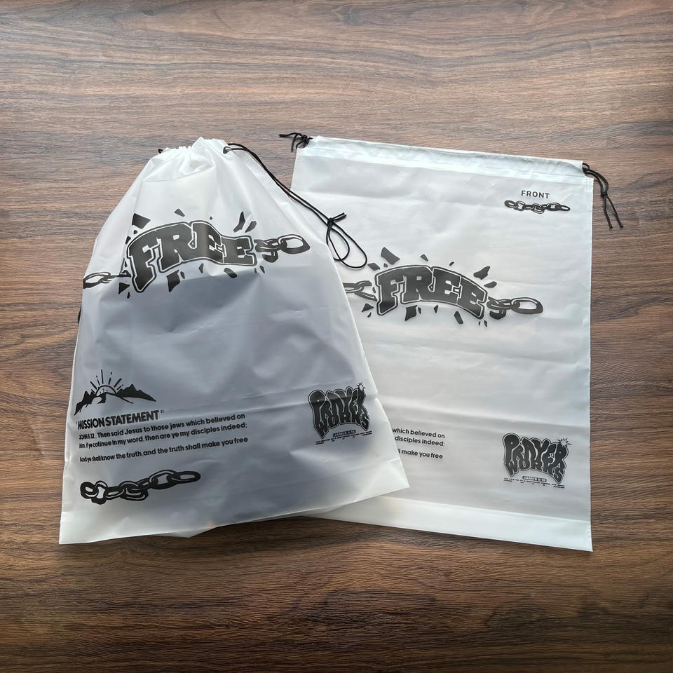 Eco-Friendly Matte PE Drawstring Bags - Custom Printed Frosted Plastic Packaging Bags for Apparel