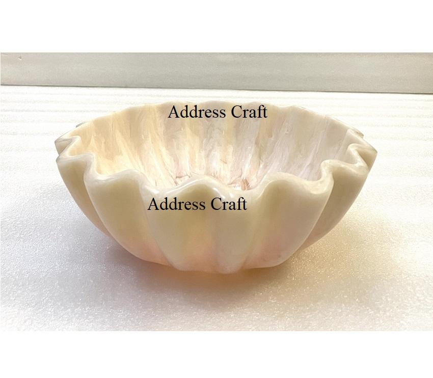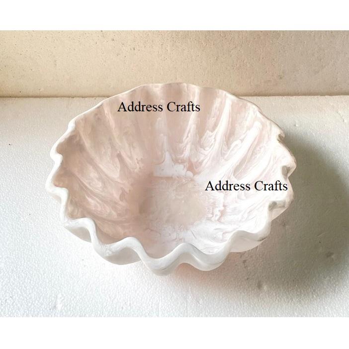 Eco Friendly Modern Fancy Round Large Resin Fruit and Salad Bowls Top Quality Handmade White Swirl Serving Bowls In White Color