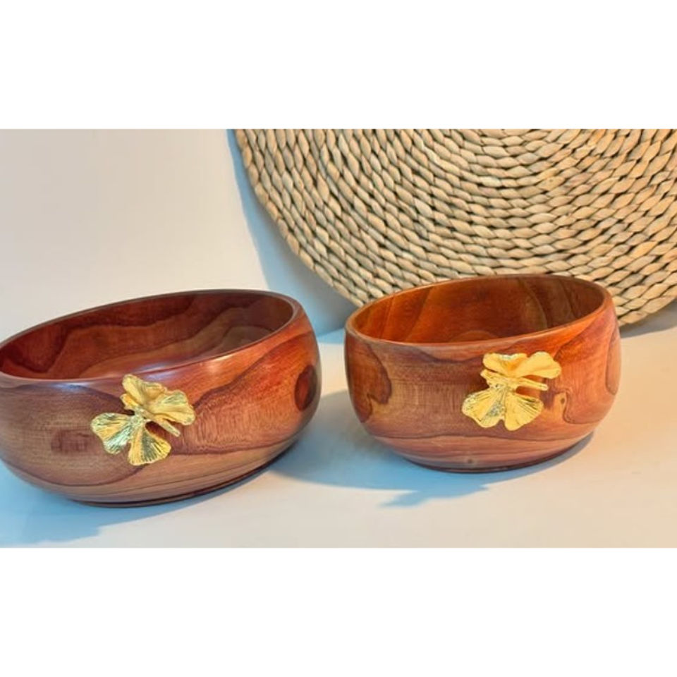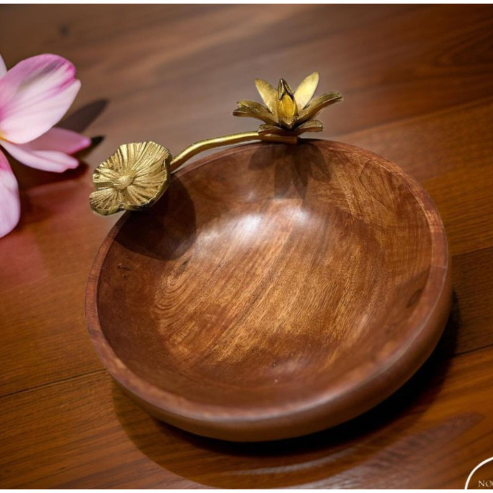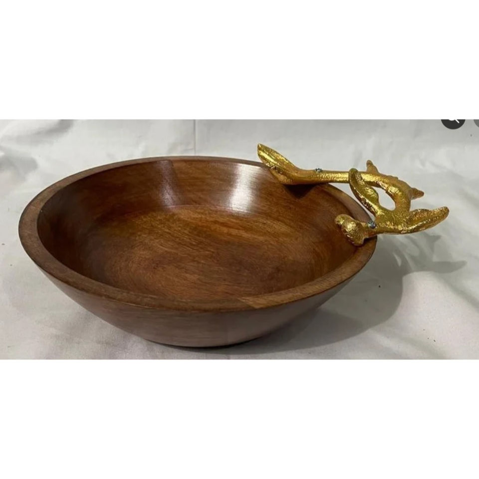 Eco-Friendly Modern Wooden Food Serving Bowl Gold Accent Fruits Salad Serving Bowl For Home And Wedding Catering