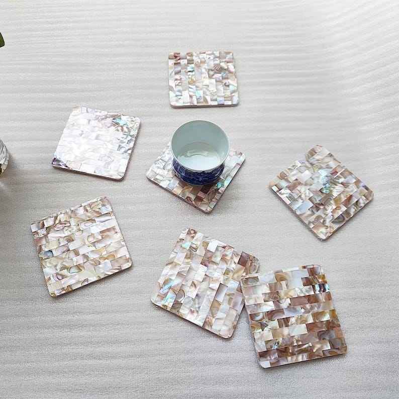 Eco-Friendly Mother of Pearl Inlay Coasters with Custom Size Premium Handmade Pearl Inlay Coaster for Wedding Return Gifts