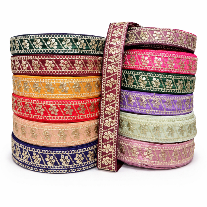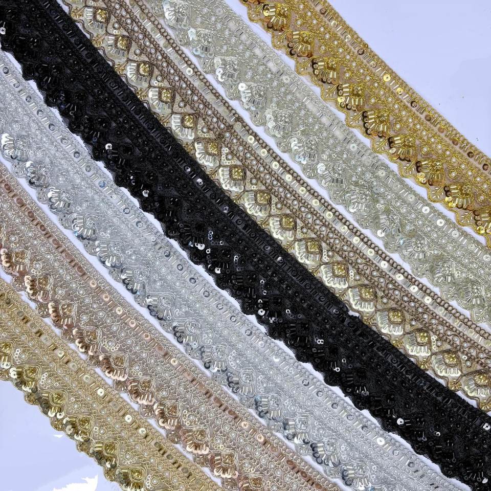 Eco-Friendly Multi Coloured Sequins Work Embroidered Voile Lace Trim Luxury Rainbow Sparkle Border Bridal Saree Dress Garment