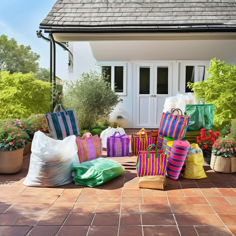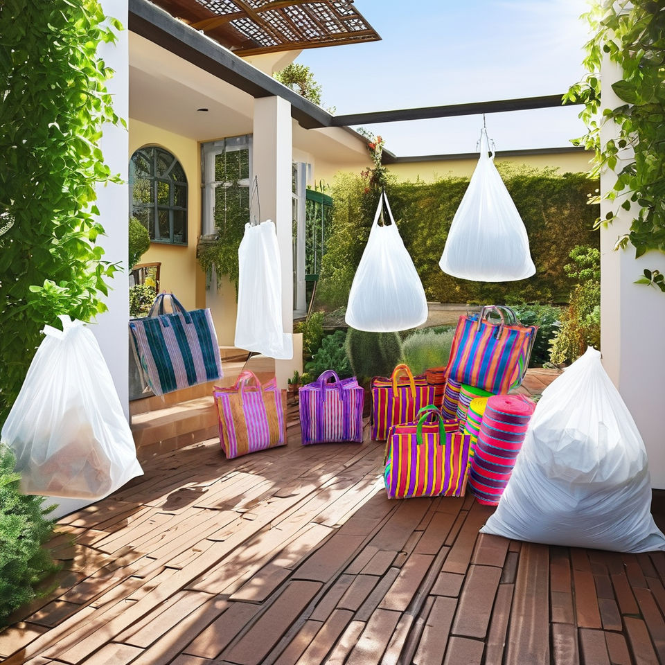 Eco-Friendly Multicolor Striped Women's Handbags India Manufactured Recycled Nylon Woven Shopping Outdoor Bags Two Handles Lady