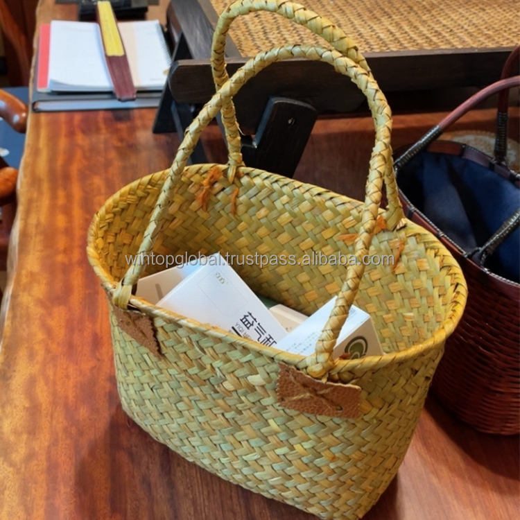 Eco-Friendly Multifunction Artistic Pastoral Style Rustic Rectangle Handmade Creative Woven Portable Storage Baskets