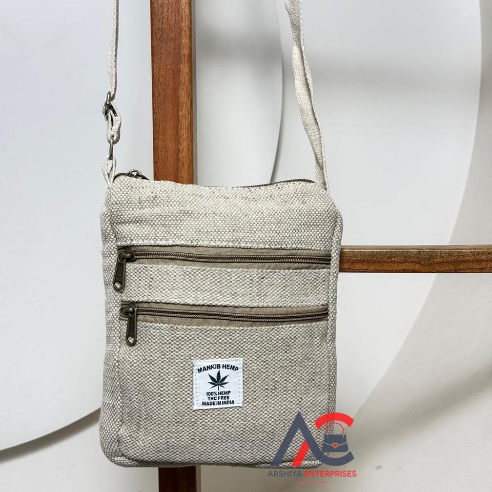 Eco-Friendly Natural Hemp Crossbody Sling Bag with Multiple Zipper Pockets Handmade Small Shoulder Bag for Travel & Daily Use