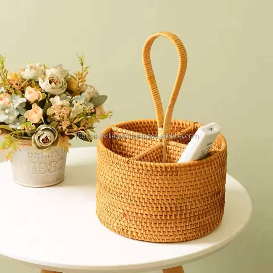 Eco Friendly Natural Rattan Basket With Handle Handmade Decorative Basket for Home Storage OEM from Vietnam