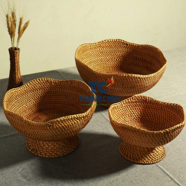 Eco-Friendly Natural Rattan Round Fruit Storage Basket Handicraft Kitchenware Rattan Baskets