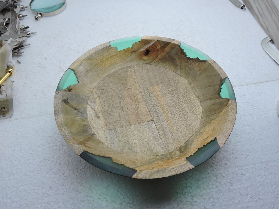 Eco Friendly New Design Hot Sale Wooden & Resin Salad Bowl Round Shape Fruit Mixing Bowl Wooden & Resin Bowl