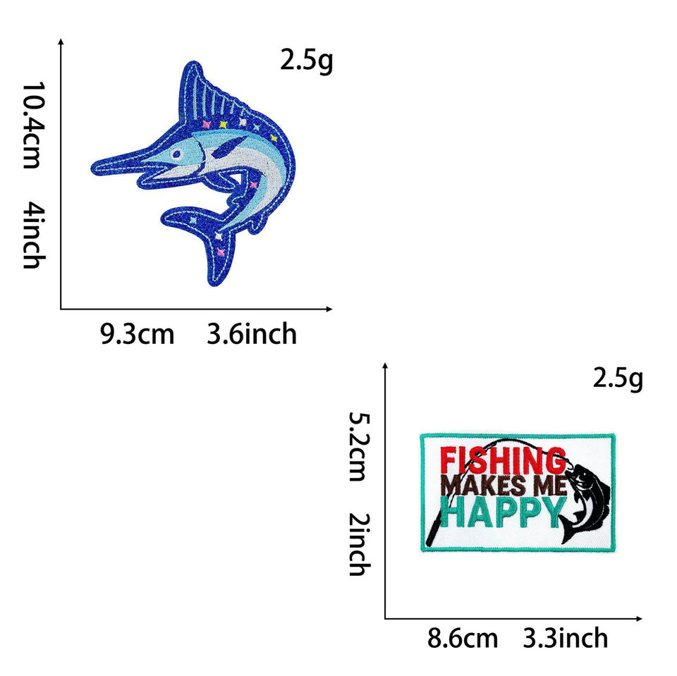 Eco-Friendly PVC Fishing Theme Embroidery Iron-On Patches Bass Trout Angler Fish Applique for Jackets Hats Bags DIY Decoration