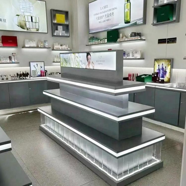 Eco-Friendly Perfume Shop Custom Floor-Standing Wall-Mounted Beauty LED Lighting White Display Counter