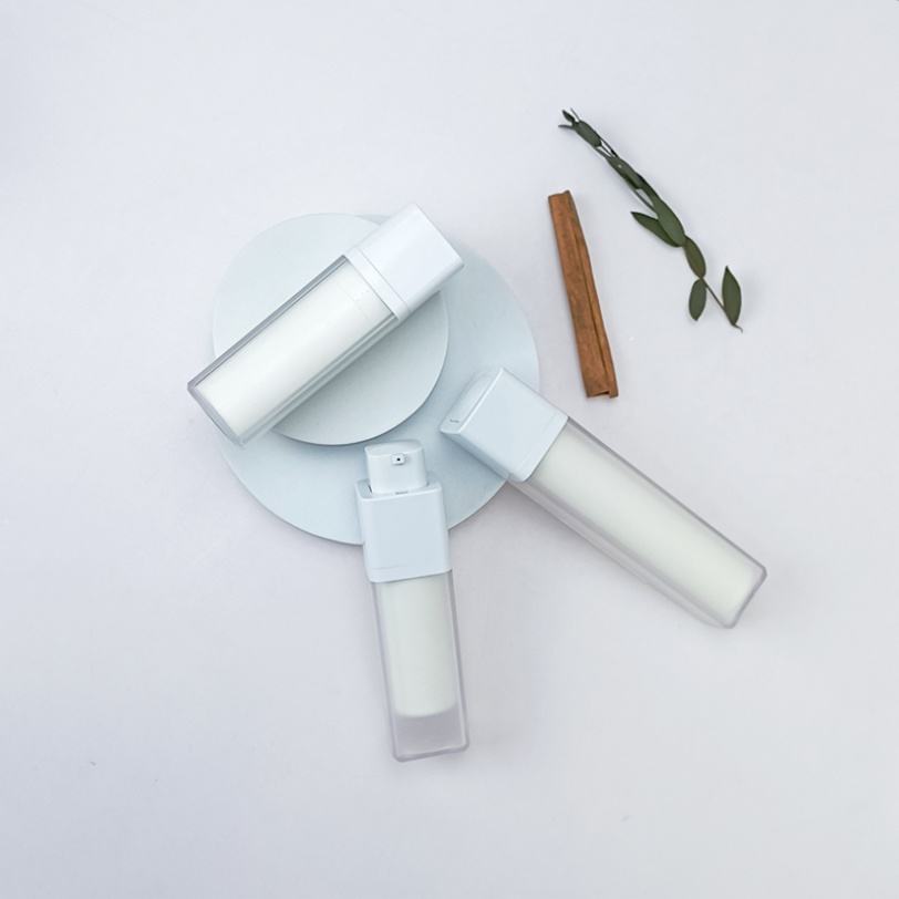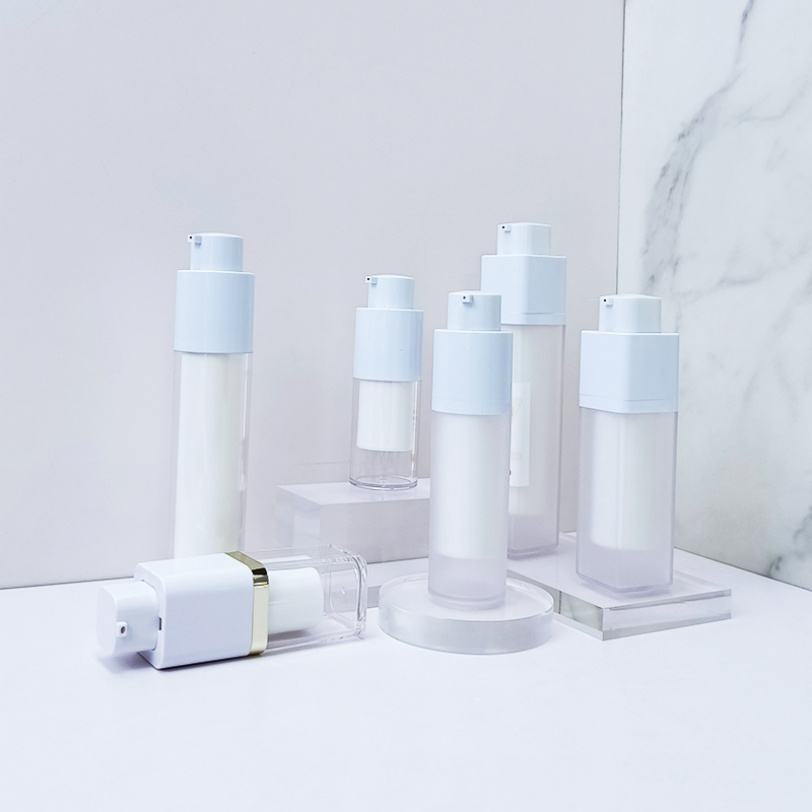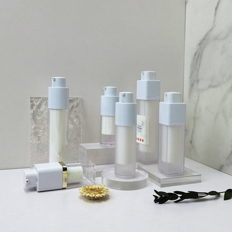 Eco Friendly Plastic Packaging Custom Color 2oz White Round square Airless Pump Bottle 15ml 50Ml 100ml Mono Pump Airless Bottle