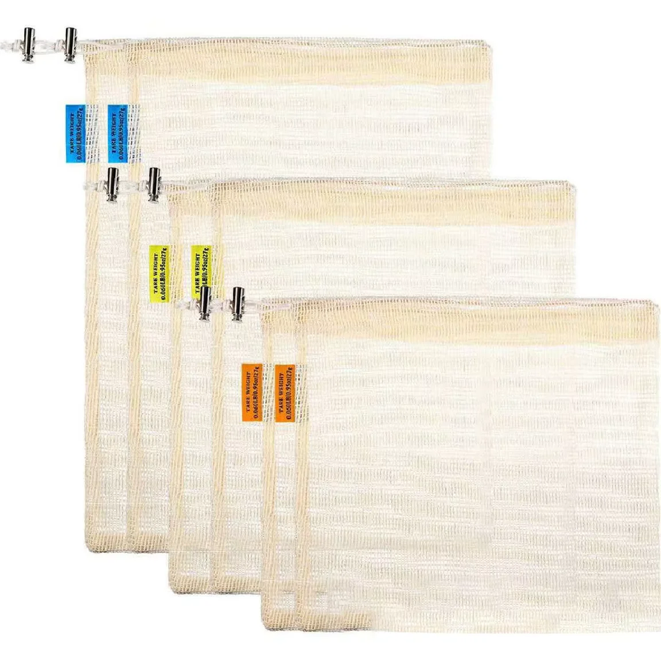 Eco-Friendly Pure Cotton Drawstring Bag With Bundle Pocket Custom Logo Mesh Fruit Bag for Daily Shopping Canvas Material Stock