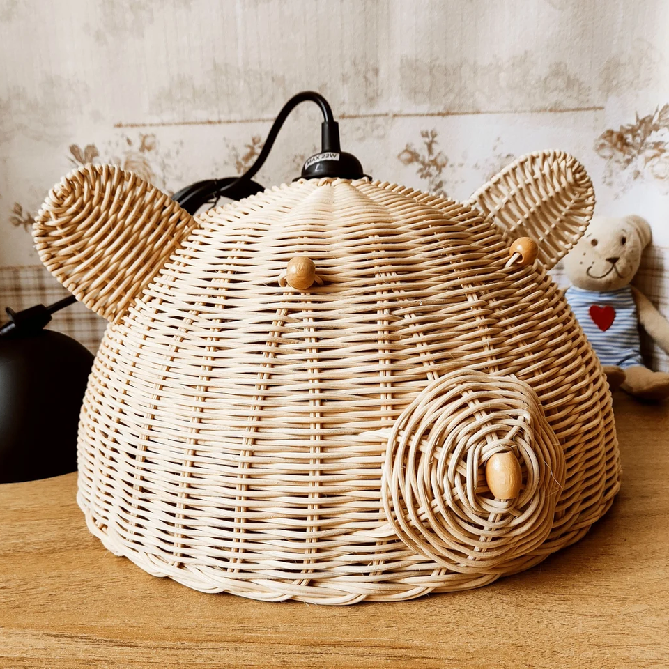 Minimalist Eco-Friendly Rattan Bear Pendant Lamp Handcrafted for Kids Room or Baby Nursery Light Covers Application