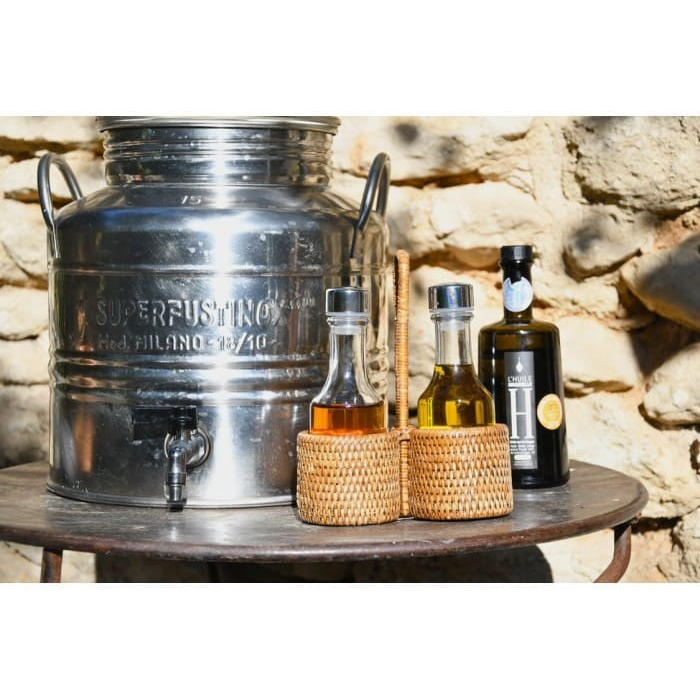 Eco-Friendly Rattan Oil And Vinegar Bottle Holder Wicker Cruet Caddy Woven Condiment Organizer Basket Rustic Kitchen Table Caddy