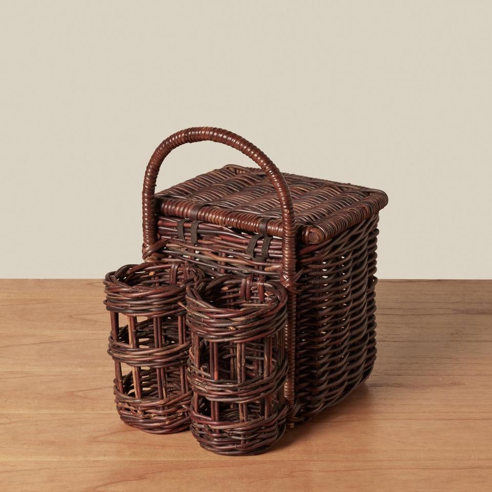 Eco Friendly Rattan Picnic Basket with Handle Handmade Wicker Picnic Hamper with Lid and Cutlery Storage for Outdoor Camping