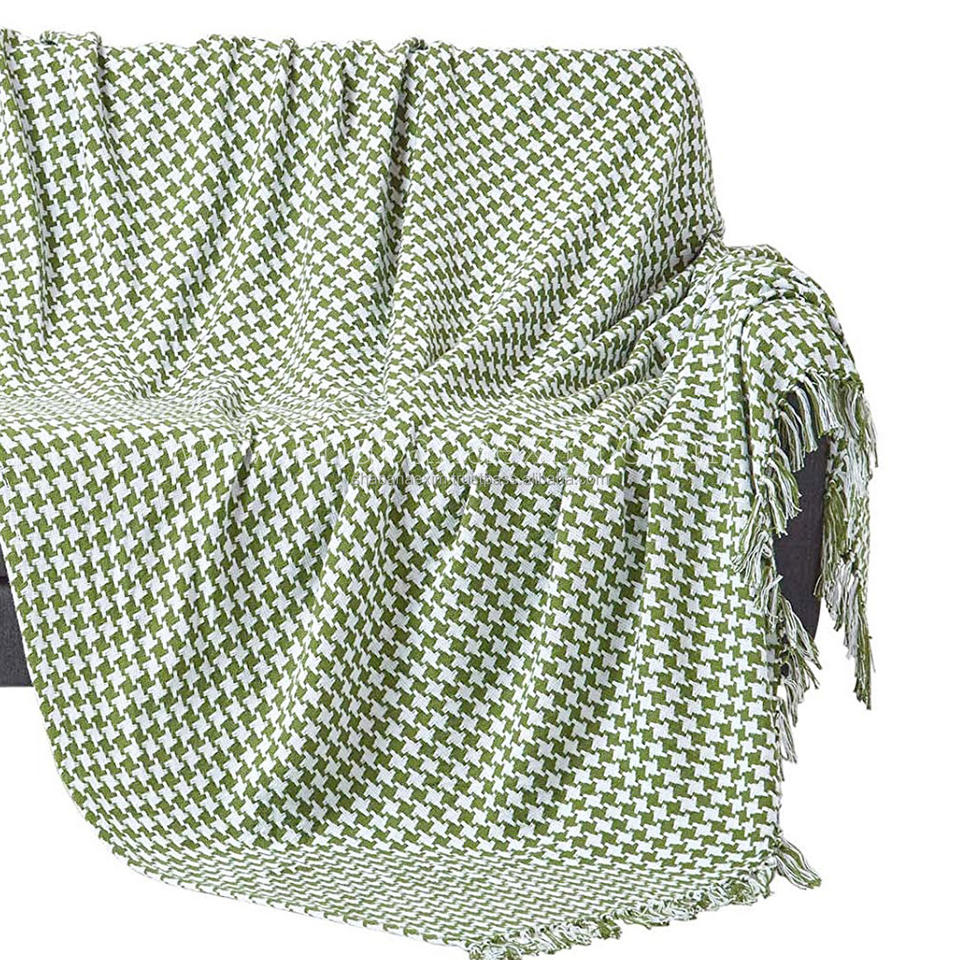 Eco Friendly Recycled Cotton Woven Pink Throw Blanket Small Diamond Pattern Portable Throw Pillows for Living Room Sofa