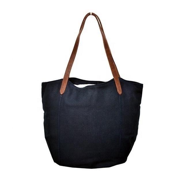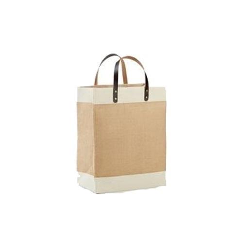 Eco-Friendly Reusable Jute Cotton Canvas Shopping Tote Bag with Leather Handles Fashion-Designed Gift Bag