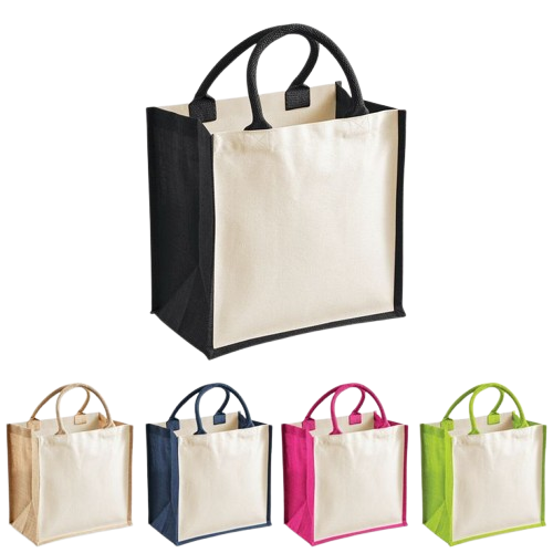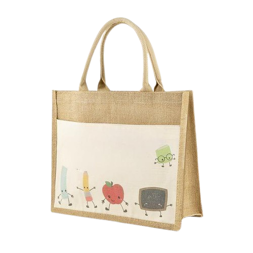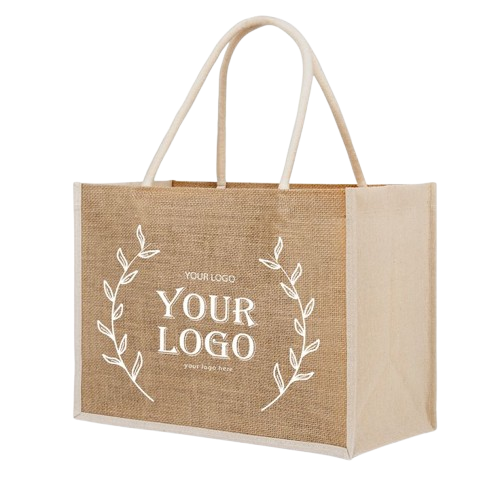 Eco-Friendly Reusable Jute Tote Bag,Custom Logo Printed, Laminated Design with Bamboo Handle