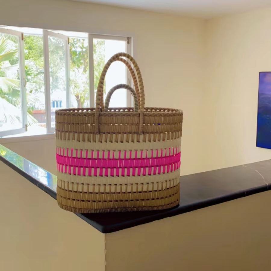 Eco-Friendly Reusable Nylon Shopping Bag with RPET Zipper Striped Handloom Woven Recycled Plastic Beach Bags Made in India