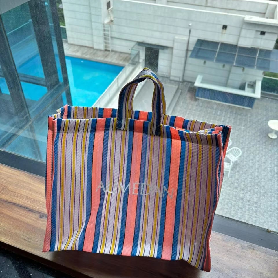 Eco-Friendly Reusable Holographic Portable Nylon Shopping Bag RPET Zipper Striped Recycled Plastic Beach Large Capacity Fashion