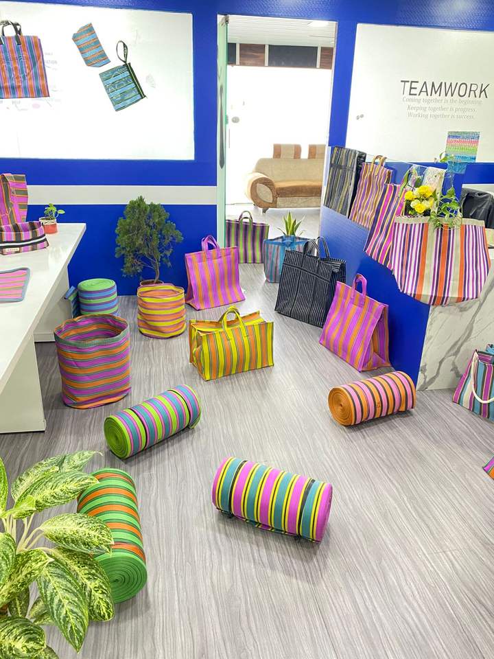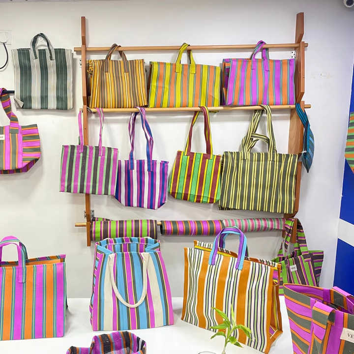 Eco-Friendly Reusable Nylon Storage Bag RPET Zipper Striped Handloom Woven Recycled Plastic Beach Bags Fashion Style Made India